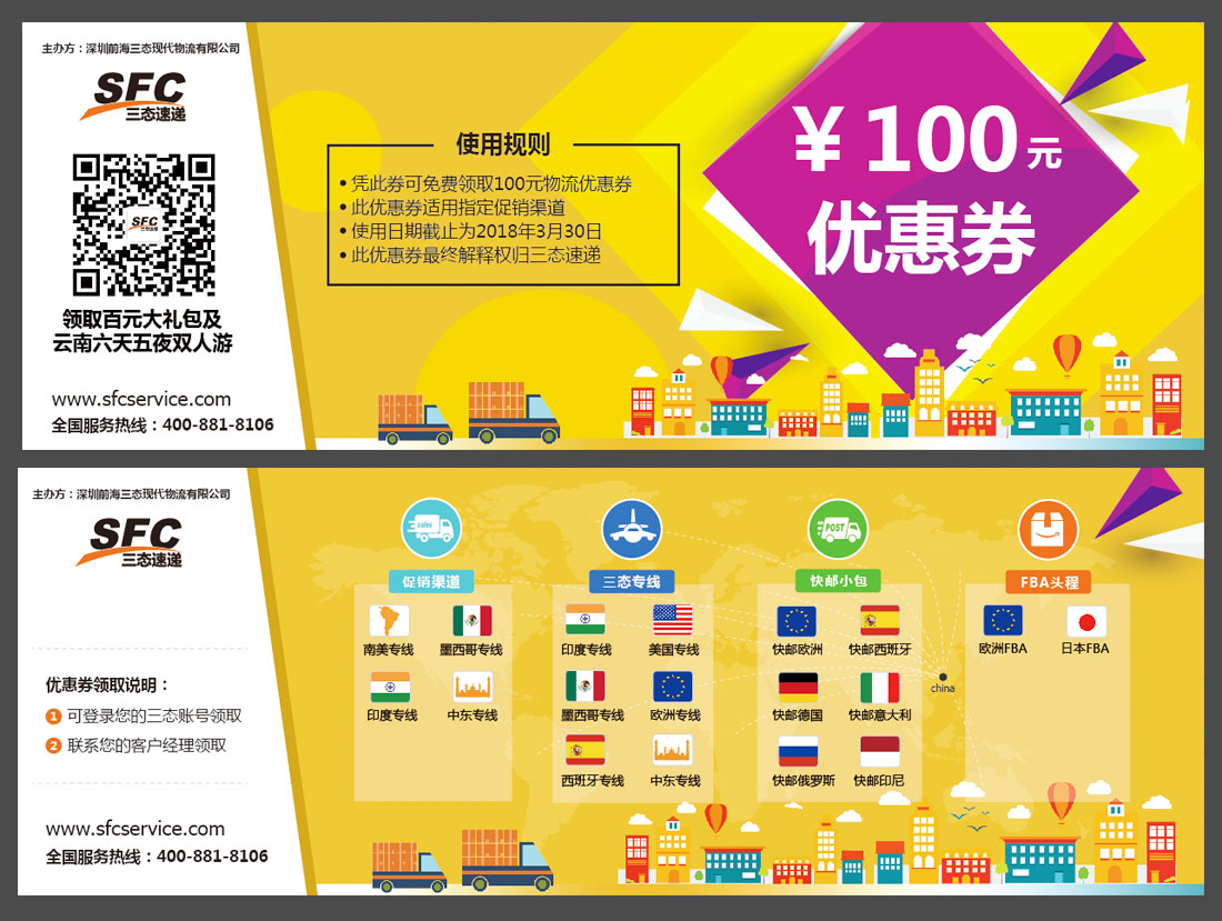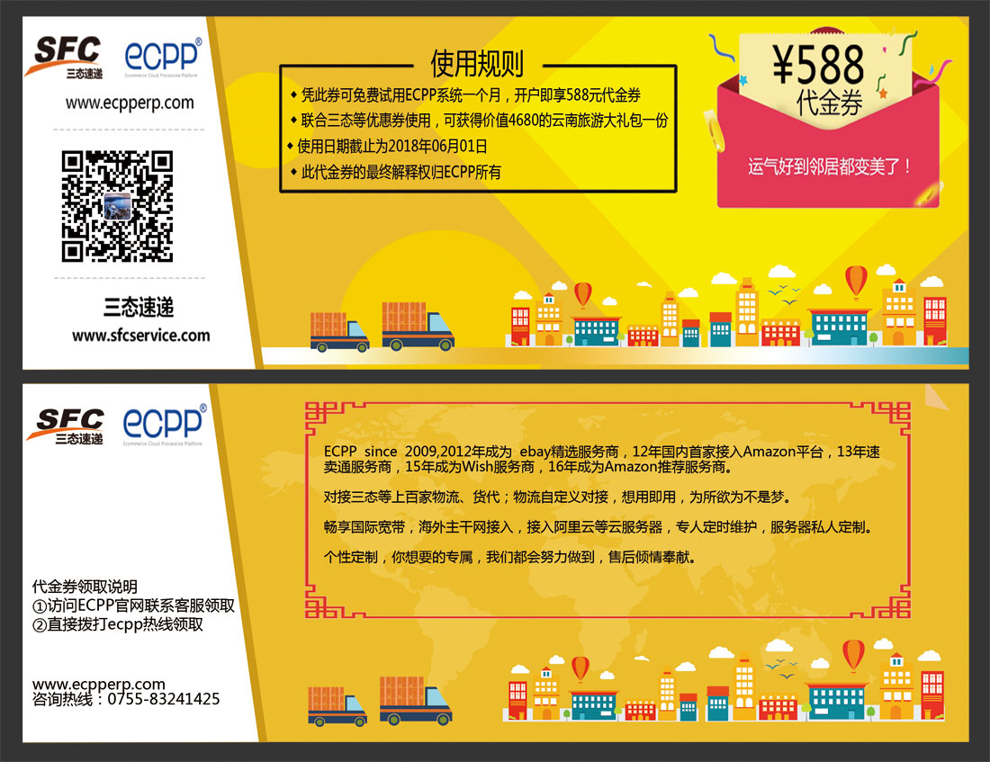 三态速递联合业界口碑品牌:通途ERP、易仓科技、ECPP、雨果网、WorldFirst、礼诺咨询、ESG、海鲨跨境等电商服务品牌联动,打造2018跨境电商生态圈,推行新年大礼包。此份礼包包含各公司新年最大力度优惠,并且三态速递独家提供七彩云南6天5夜双人游助力生态圈发展。